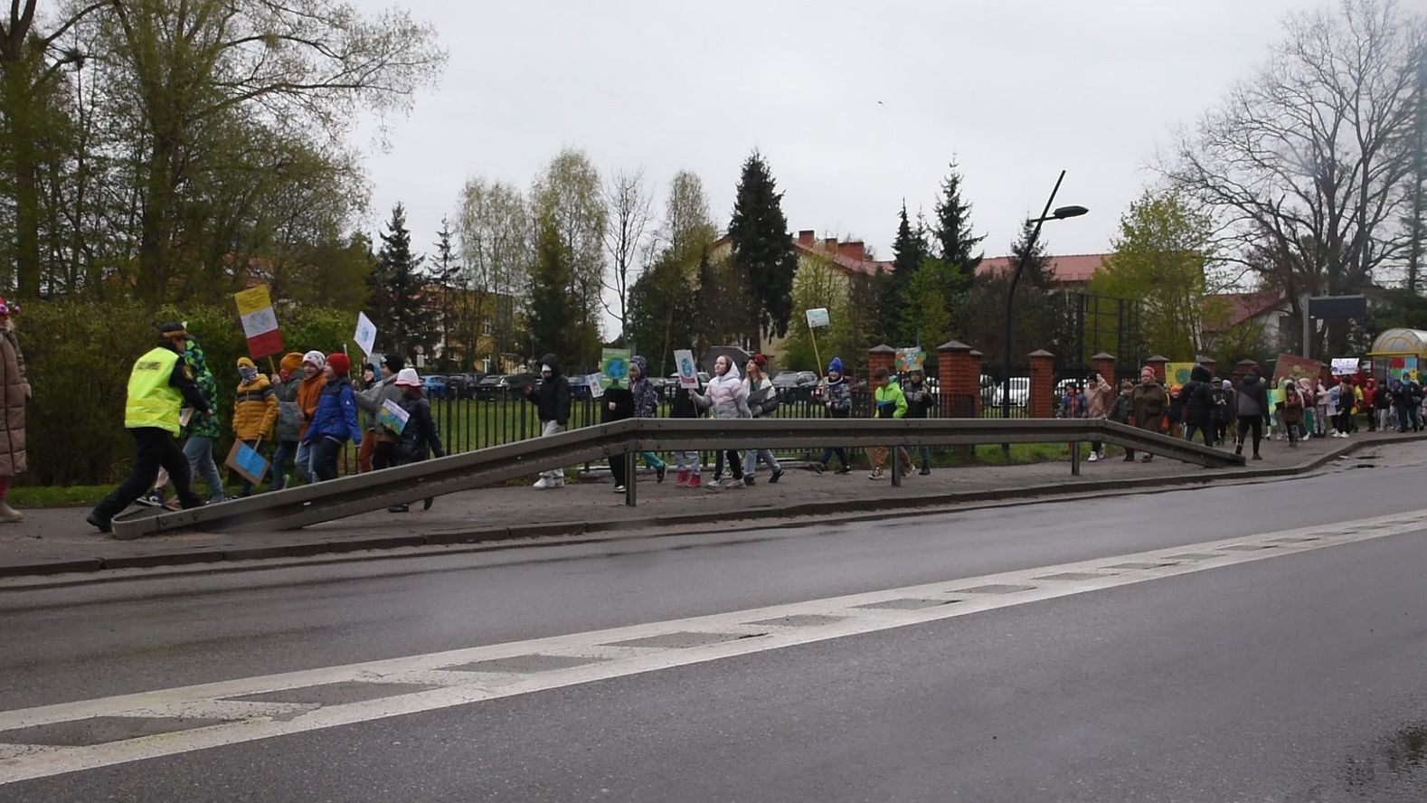 Happening rozpoczął przemarsz uczniów ulicami Kobylnicy. Dzieci niosły przygotowane przez siebie transparenty promujące postawy proekologiczne i śpiewały piosenki zachwalające piękno naszej planety Ziemi.